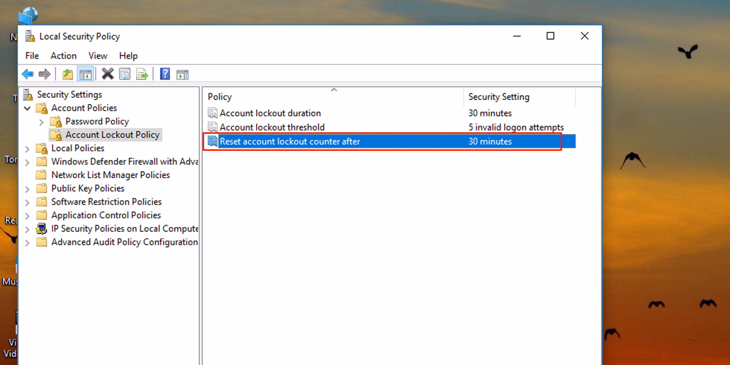 2. Find Account Lockout Policy. In the left pane, click on Account Policies to expand it. Then click on Account Lockout Policy.