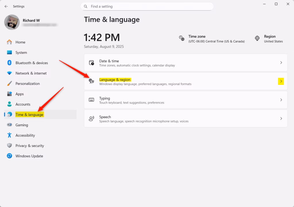 Windows 11 Language & Region Settings