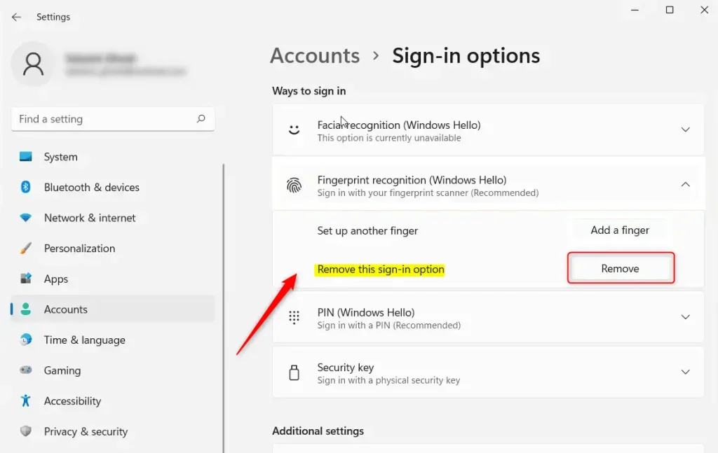How to Remove Fingerprint Sign-in in Windows 11
